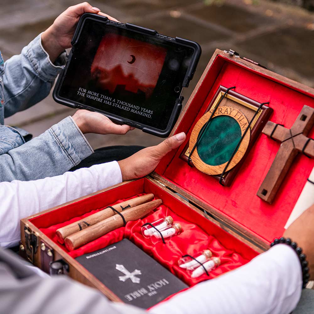 Using a digital map and a case of exciting props, hit the streets and follow the puzzle trail for a thrilling real-world adventure.